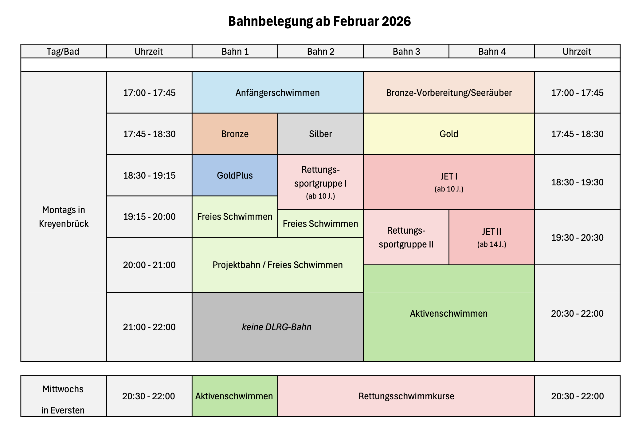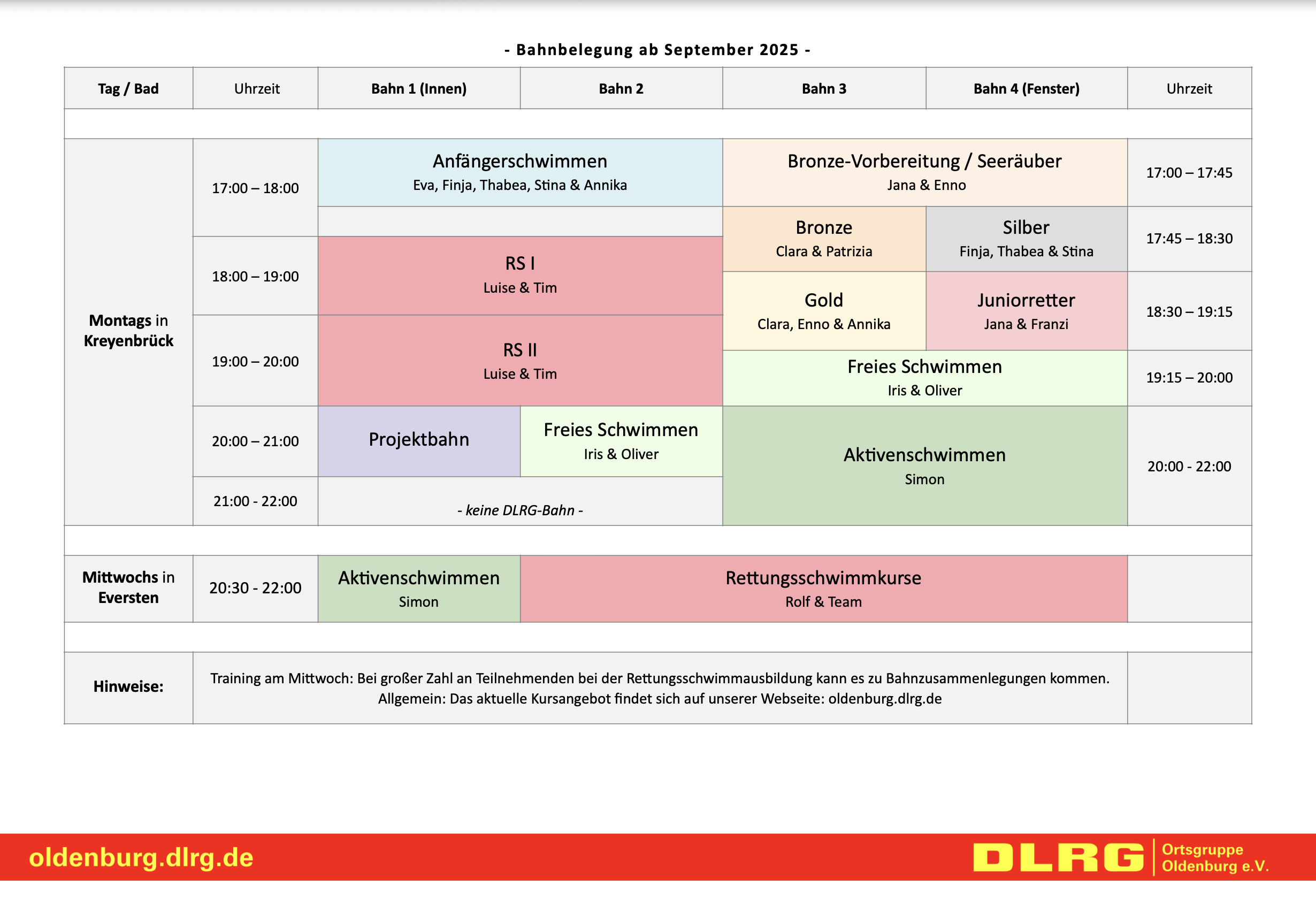 Für Anfängerschwimmen & Rettungsschwimmkurse bitte die online Anmeldung nutzen:
